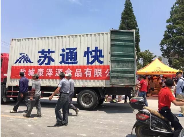 (康泽源食品有限公司捐献一车食品物资送达射阳灾区)
