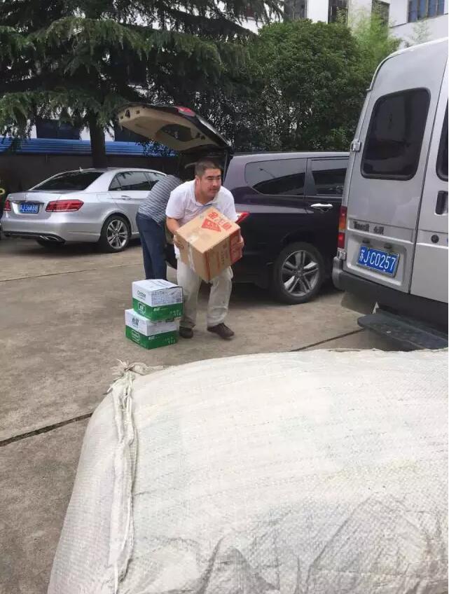 6月24日下午16时许,市家协与市中小企业研修班所准备的救援物资在盐城市技师学院培训处院内装车完毕,准备前往阜宁灾区。